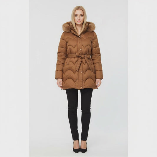 Μπουφάν μακρύ με κουκούλα και ζώνη